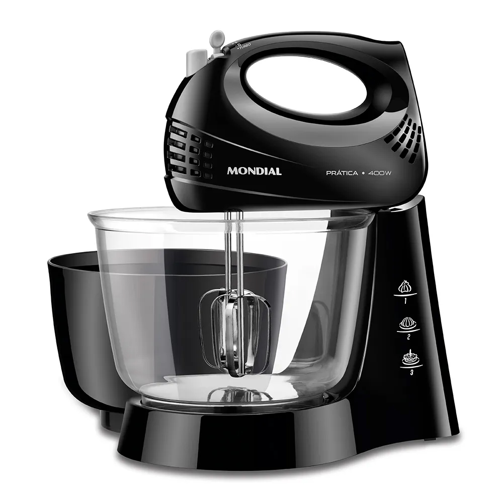 Prepare receitas em dobro com a Batedeira Prática B-45-B Mondial. Com 400W de potência, 3 velocidades para controlar o ponto das receitas e função turbo para aumentar o desempenho, ela é ideal para praticar a criatividade na cozinha. Vem com 2 tigelas: uma maior de 3,6 litros e uma menor de 2,3 litros. Conta com batedores em aço cromado, que são mais resistentes e deixam a massa no ponto certo. Saiba mais sobre a B-45-B da Mondial: