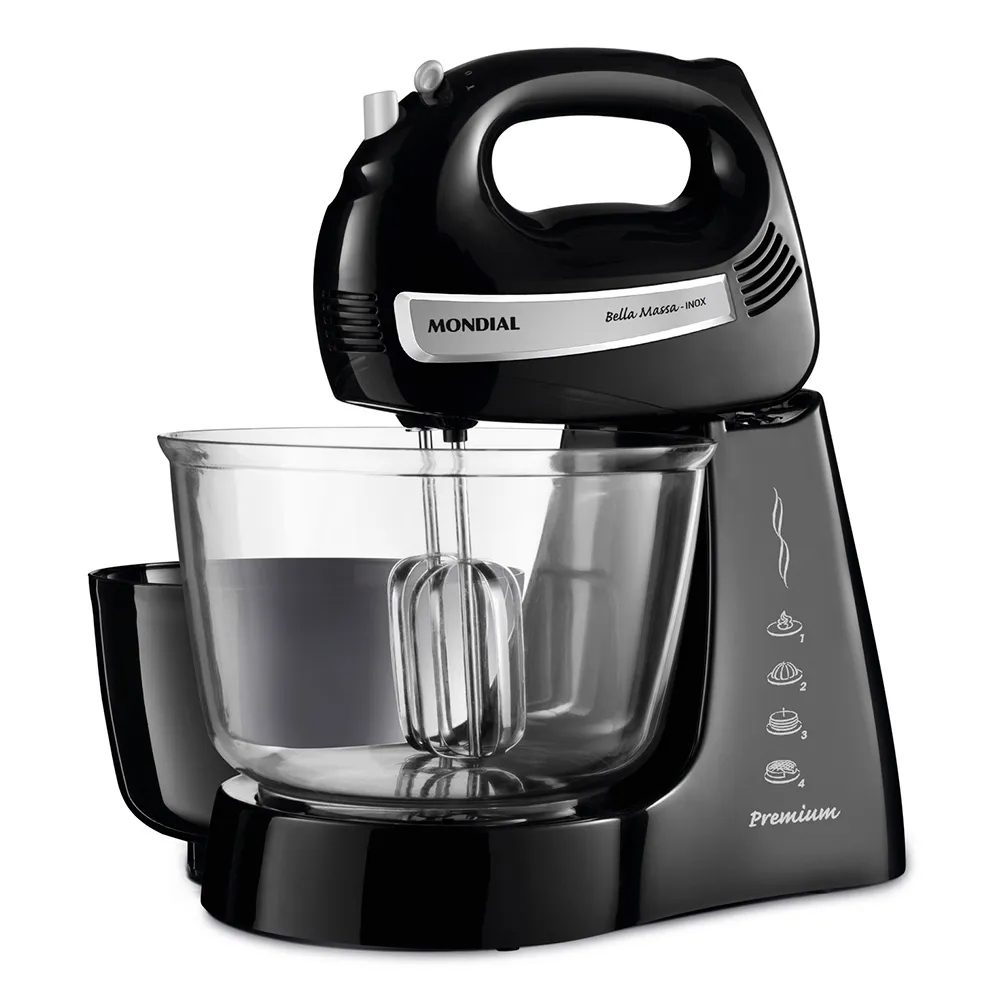 A Batedeira Bella Massa Inox Premium B-23-NP garante performance, praticidade e precisão em suas receitas! Possui 500W de potência, 4 velocidades para controlar o tipo de massa a ser preparada e função turbo para aumentar o desempenho. Acompanha 2 tigelas, com capacidade de 4 e 2,3 litros. Além disso, os batedores em aço cromado, além de mais duráveis, deixam a massa no ponto certo. Saiba mais sobre a B-23-NP da Mondial: