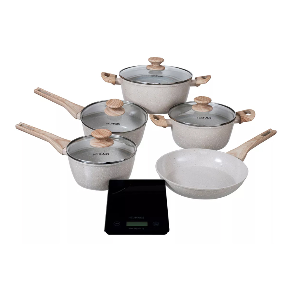 Conjunto de Panelas 6 Peças com Revestimento Cerâmico e Balança Digital - Vanilla