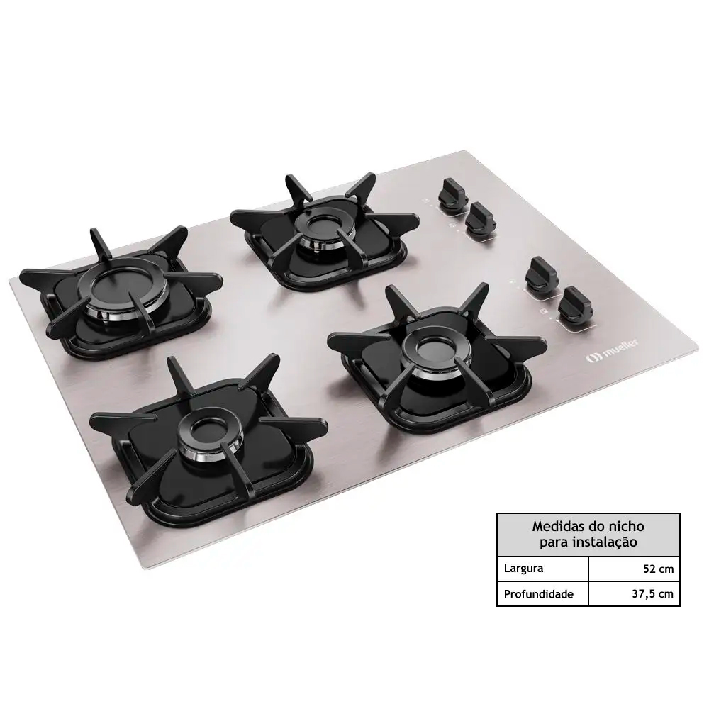 Cooktop Mueller 4 Bocas de Alumínio com Queimador Ultra Chama MCG4BK Bivolt
