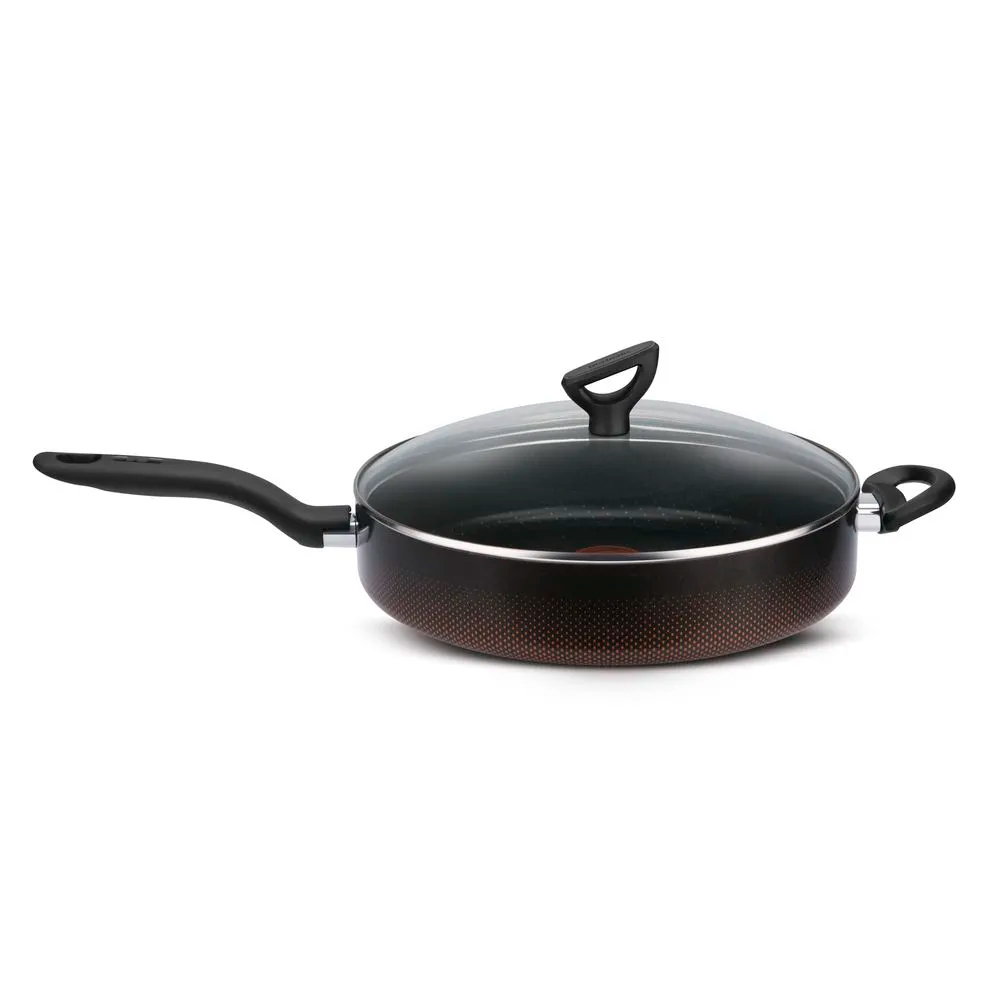 A Frigideira Arno Jumbo 30 Rochêdo Inova é a escolha perfeita para quem busca praticidade, resistência e design moderno na cozinha. Com um tamanho amplo de 30 cm de diâmetro, oferece espaço de sobra para preparar deliciosas receitas para toda a família. Seu revestimento antiaderente de alta qualidade, combinado com a tecnologia Rochêdo Inova, proporciona uma superfície durável e fácil de limpar, evitando que os alimentos grudem durante o preparo. O toque de cobre na base não só confere um visual sofisticado, mas também melhora a distribuição do calor, garantindo cozimentos mais rápidos e eficientes. Ideal para usar em fogões a gás, elétricos e vitrocerâmicos, a frigideira oferece uma experiência culinária mais prática e saborosa.