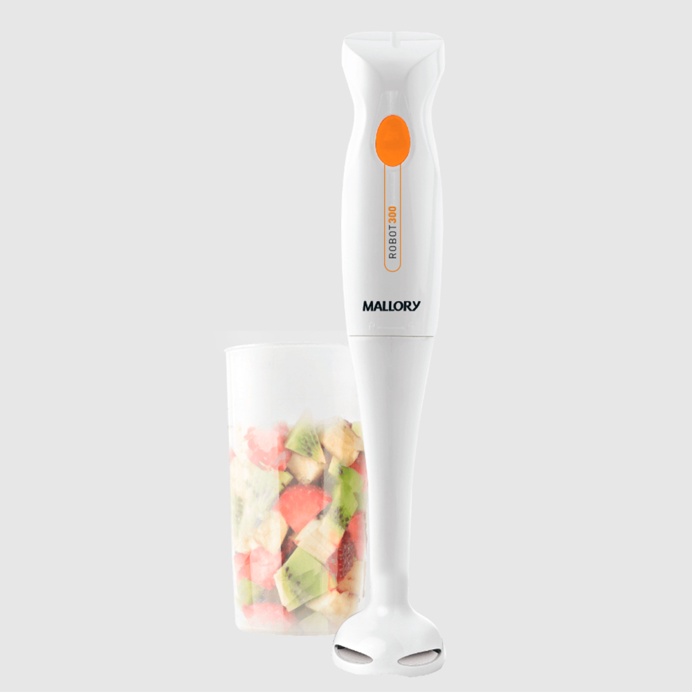 O Mixer Mallory Robot 300 é o aliado perfeito para o preparo de sucos, vitaminas, molhos, cremes e diversas receitas. Compacto, potente e fácil de usar, ele conta com design ergonômico e lâminas de aço inox que garantem alta performance no processamento dos alimentos. Acompanha um copo medidor com tampa de 800ml, ideal para o uso direto no preparo e armazenamento.