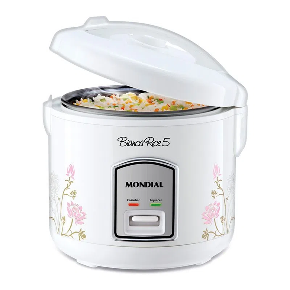 Faz até 5 xícaras de arroz e vários tipos de alimentos doces e salgados como risoto, sopas, carnes e legumes