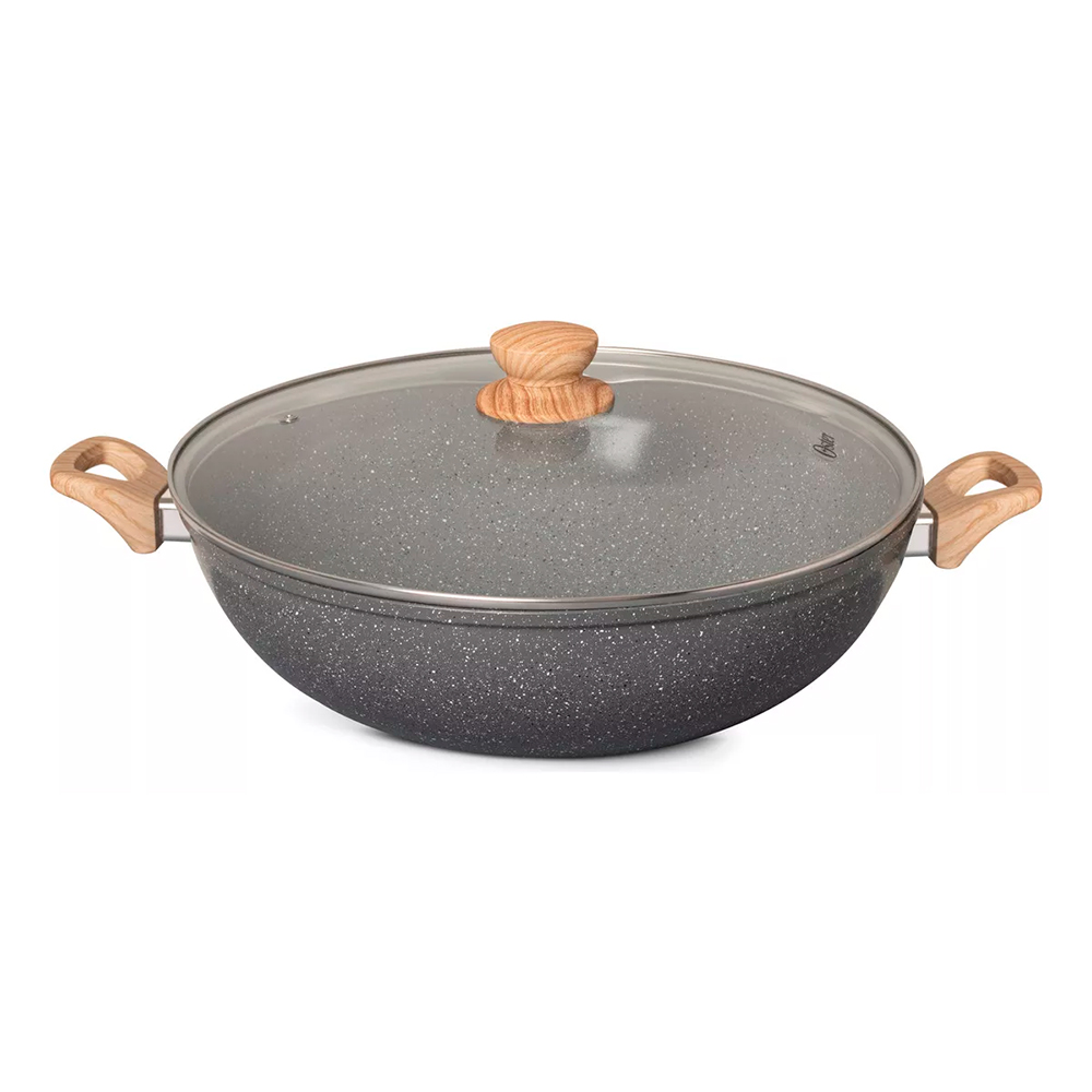 Panela Wok com Tampa 7L Cerâmica Marble Edition Dark Grey Oster