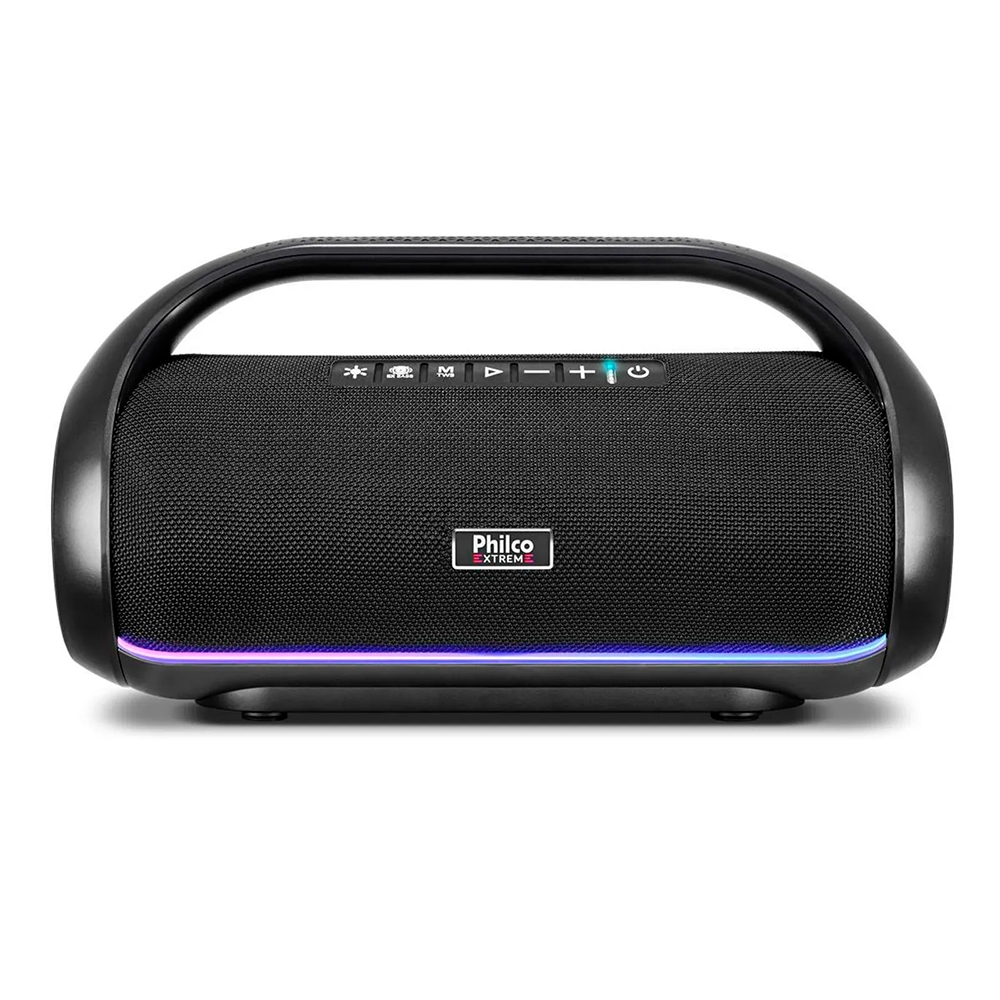 descubra o speaker philco pbs220bt extreme, projetado para transformar suas festas e momentos de lazer com som potente e iluminação dinâmica. com potência de 220w rms, conexão bluetooth 5.3 e função flash lights, ele une alta performance e estilo num modelo portátil e resistente.