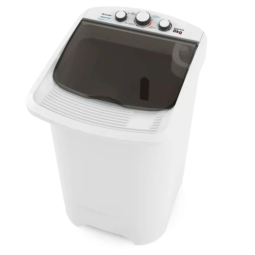 O Tanquinho Mueller Supertank 8kg Aquatec possui timer manual com 4 programas, perfeito para lavar todos os tipos de roupas, garantindo máxima eficiência e economia.