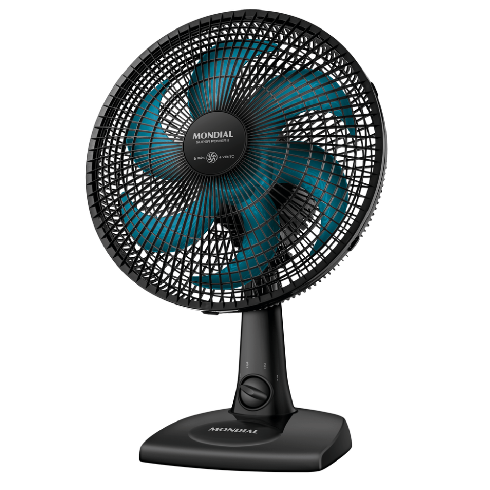 O Ventilador de Mesa Mondial Super Power II é a solução ideal para quem busca ventilação potente, conforto térmico e praticidade no dia a dia. Com design moderno nas cores preto e azul petróleo, ele une desempenho, versatilidade e economia, proporcionando frescor eficiente em diferentes ambientes da sua casa, escritório ou espaço de lazer.